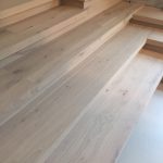 Um den Höhenunterschied vom Alt- zum Neubau auszugleichen, haben wir eine Holztreppe gebaut.