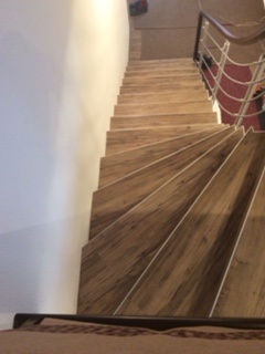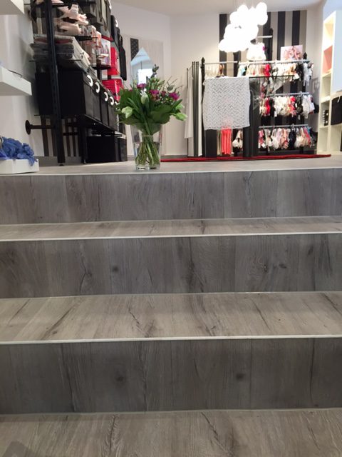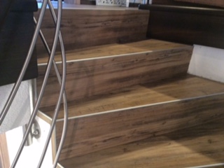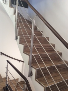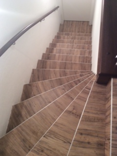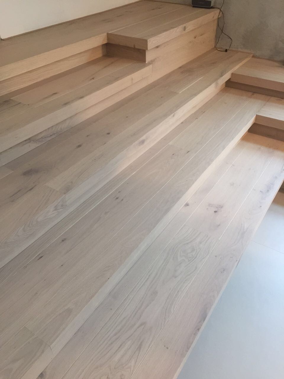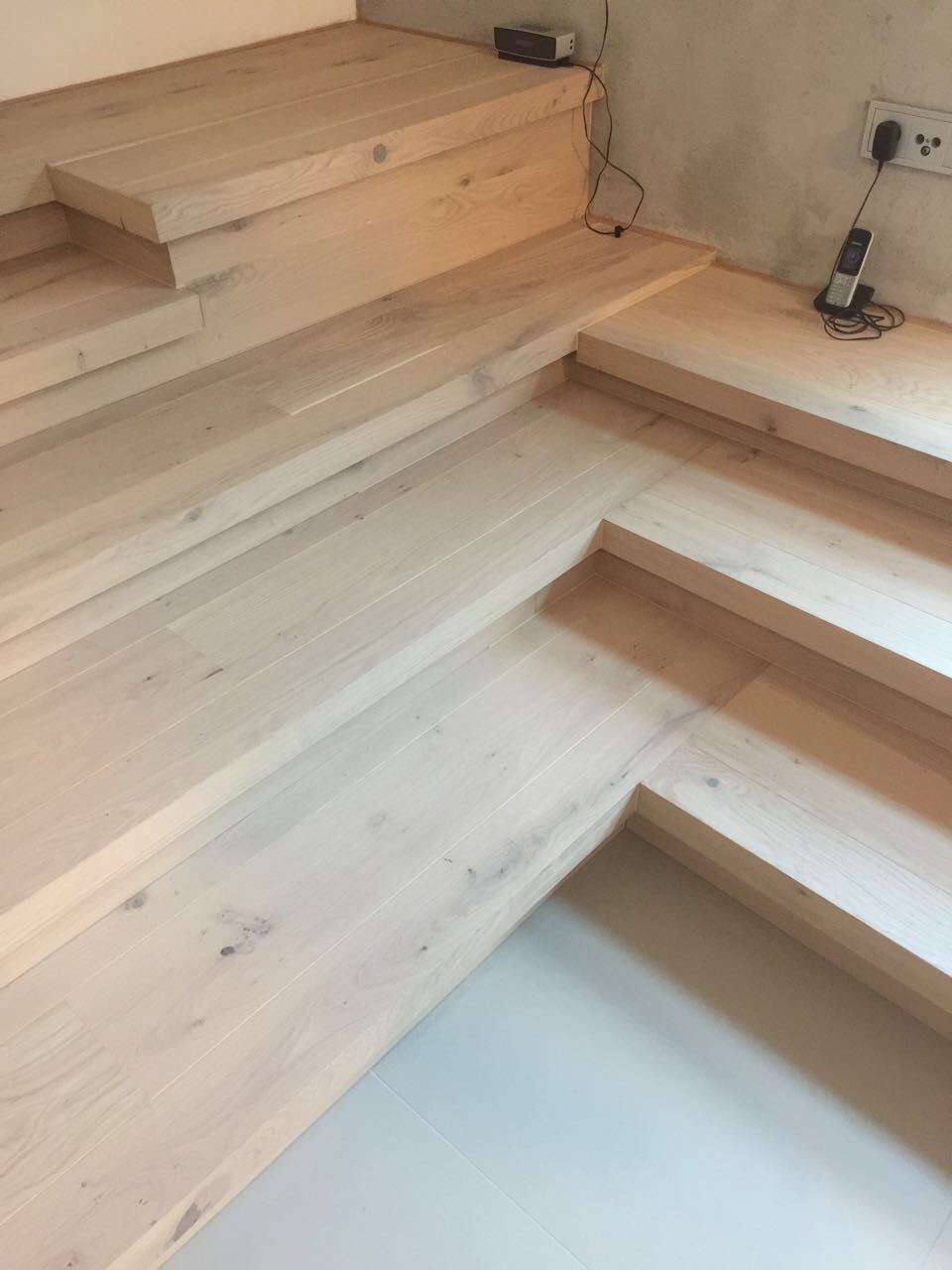 Um den Höhenunterschied vom Alt- zum Neubau auszugleichen, haben wir eine Holztreppe gebaut.