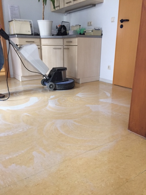 In einer Praxis in Kamenz wurde ein neunjahre alter Linoleumfußboden grundgereinigt und aufbereitet.